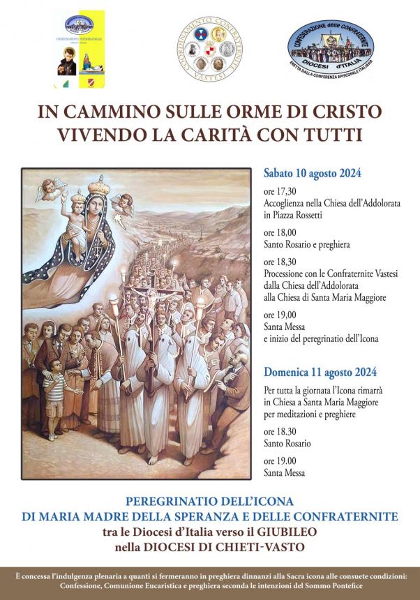 Nell’occasione, per iniziativa della Confraternite Vastesi, l’icona farà tappa a Vasto nei giorni 10 e 11 agosto 2024 presso la Chiesa di Santa Maria Maggiore.
