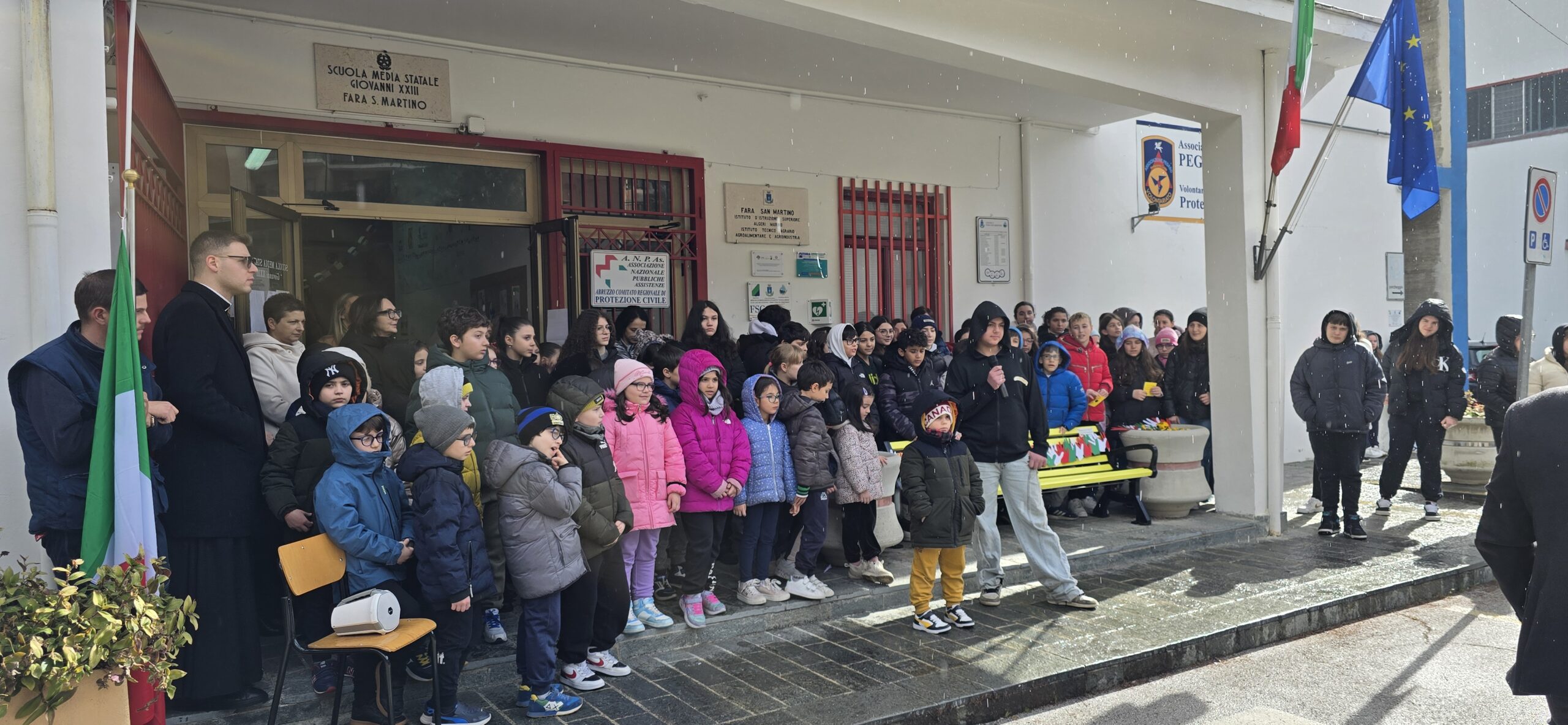 FARA SAN MARTINO. Stamattina, presso la sede della Scuola Primaria e Secondaria di Fara San Martino, si è tenuta una cerimonia speciale per l’inaugurazione della panchina gialla contro il bullismo, un’iniziativa patrocinata dal Ministero dell’Interno e dall’ANCI, che ha coinvolto attivamente tutti gli studenti di Fara San Martino, e nello specifico quelli delle classi quarta e quinta elementare insieme alle loro insegnanti. L’evento ha visto la partecipazione del Sindaco di Fara San Martino, Antonio Tavani, dell’amministrazione comunale, dei genitori e di numerosi rappresentanti della comunità, e naturalmente dei protagonisti principali: alunni e docenti accompagnati da Irene Vizzarri, Dirigente Scolastica del Comprensivo di Palena-Torricella.