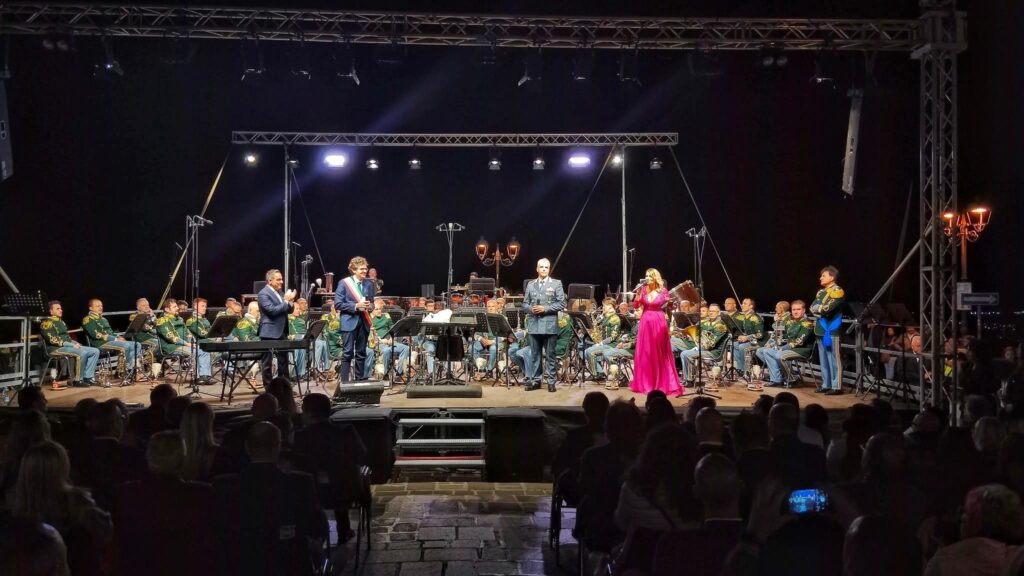 Il concerto ha offerto un viaggio tra melodie immortali: dalle colonne sonore dei film di Sergio Leone, con le intramontabili composizioni del maestro Ennio Morricone, fino ai grandi classici della canzone italiana, come “Torna a Surriento” di Ernesto De Curtis, insieme ad altri celebri brani che hanno emozionato la platea.