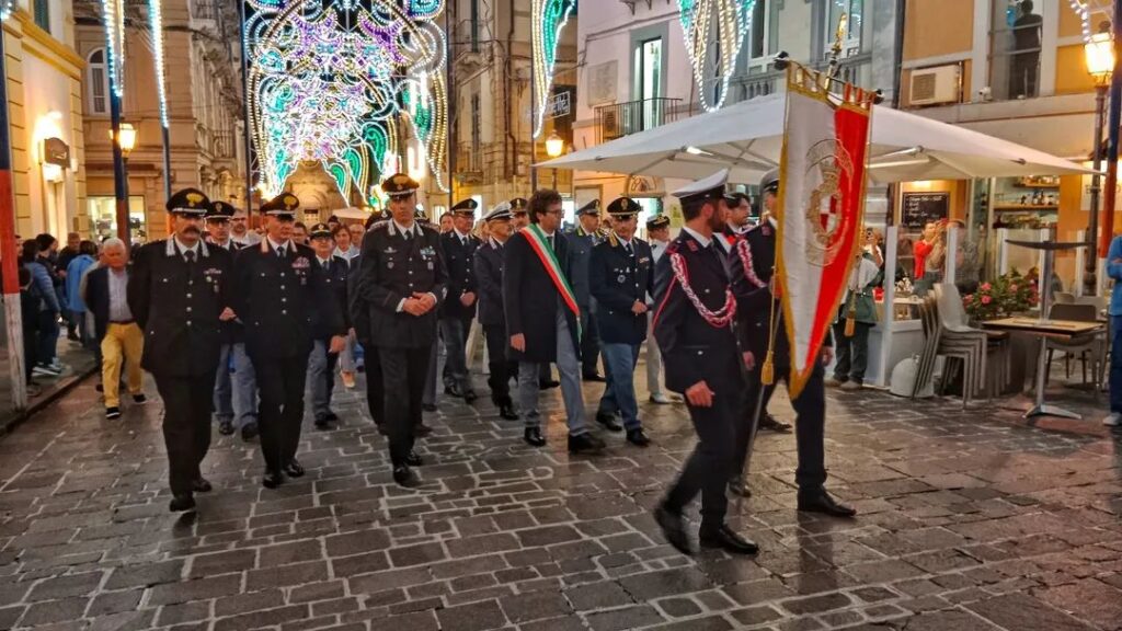 La processione è arrivata fino alla chiesa di San Michele dove il vescovo Bruno Forte ha invocato con una preghiera la pace tra i popoli.