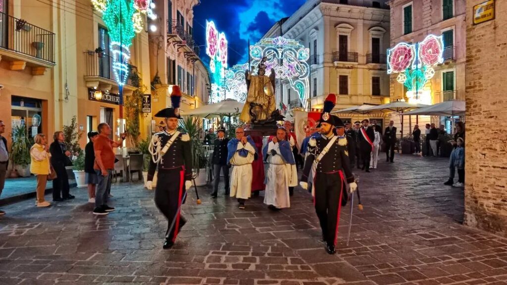 VASTO. Il lungo corteo di fedeli stasera ha attraversato le strade del centro storico di Vasto in onore del Santo Patrono San Michele Arcangelo, subito dopo la Santa Messa nella chiesa di Santa Maria Maggiore.