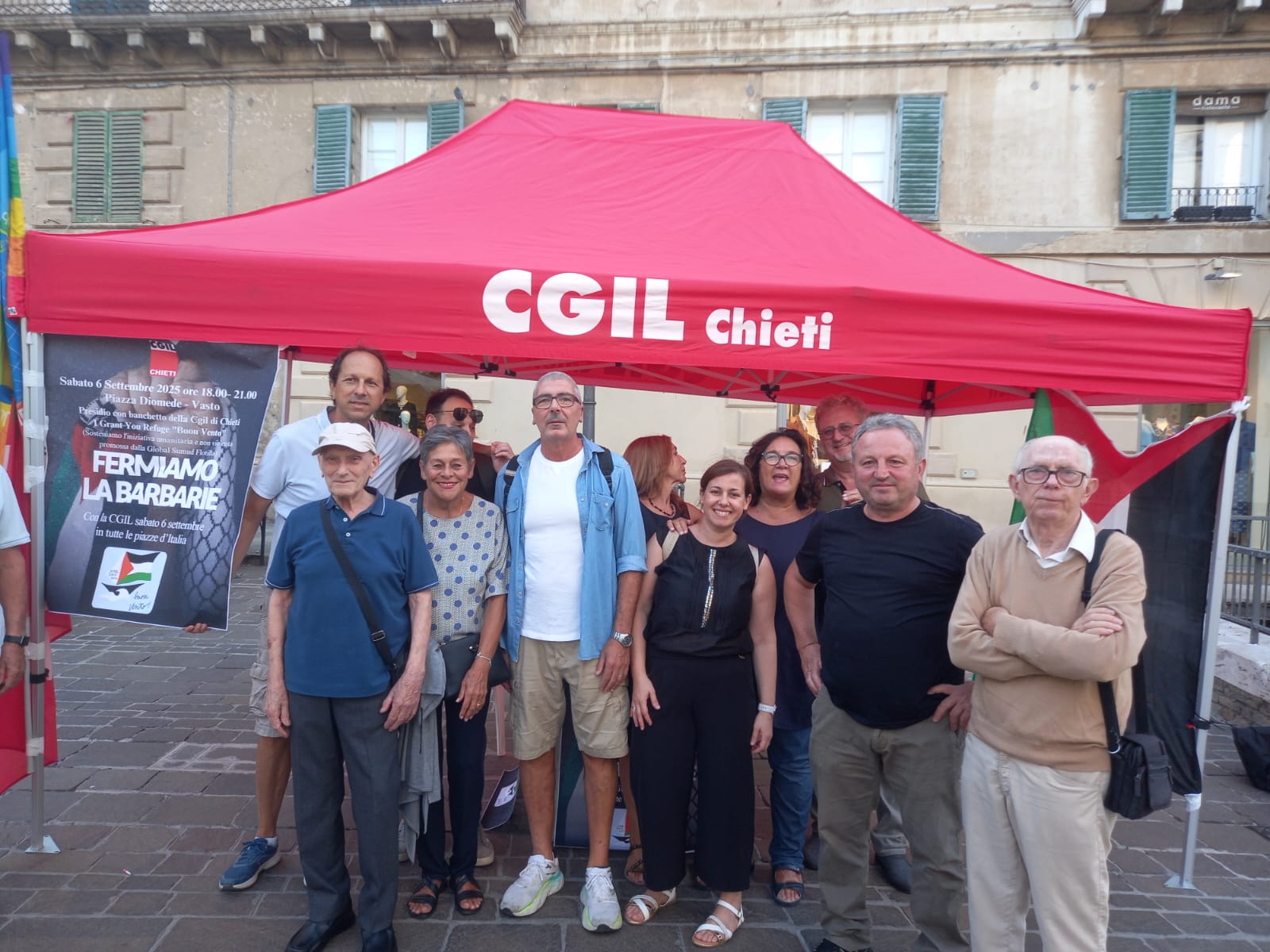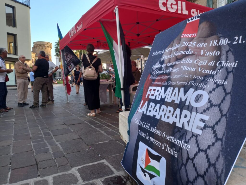VASTO. Questo pomeriggio piazza Diomede ha ospitato una tappa del sit-in promosso dalla Cgil Chieti nell’ambito dell’iniziativa “Fermiamo la barbarie”, volta a sensibilizzare l’opinione pubblica contro la guerra in Palestina.