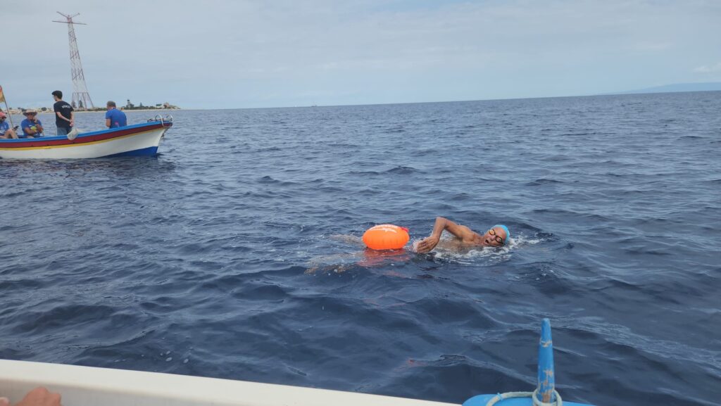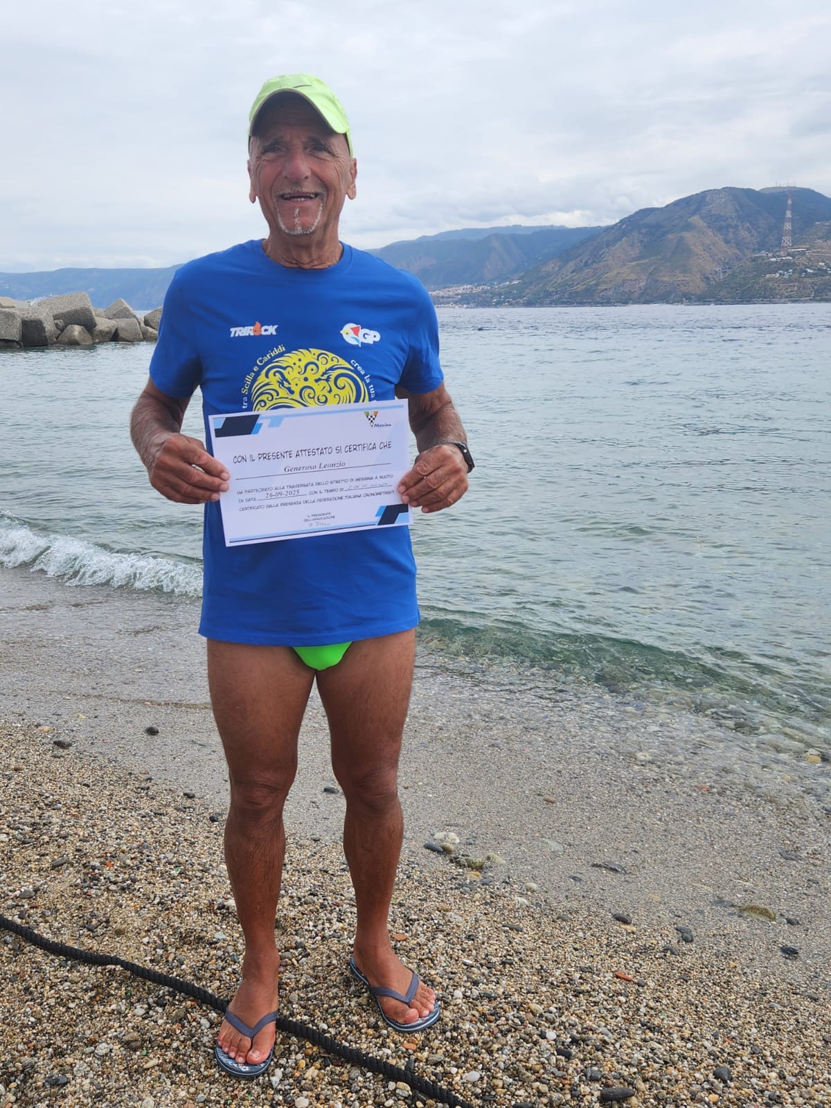 Partenza da Capo Peloro, la punta estrema nord orientale della Sicilia, e arrivo a Cannitello, in provincia di Reggio Calabria: Leonzio Generoso si conferma ancora una volta un esempio virtuoso per il mondo dello sport.