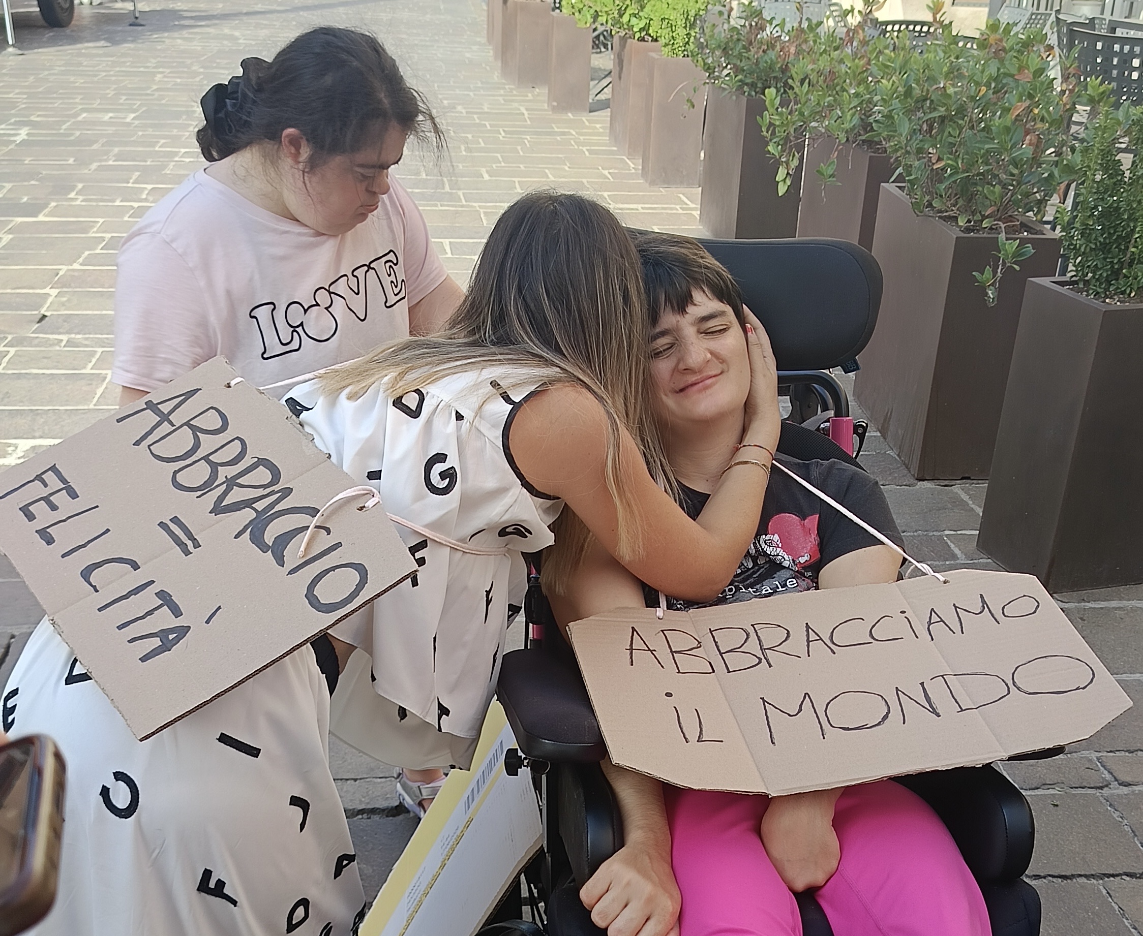 Un abbraccio è il linguaggio universale e oggi i ragazzi hanno voluto donarlo alla città come segno di inclusione, amicizia e fiducia reciproca.