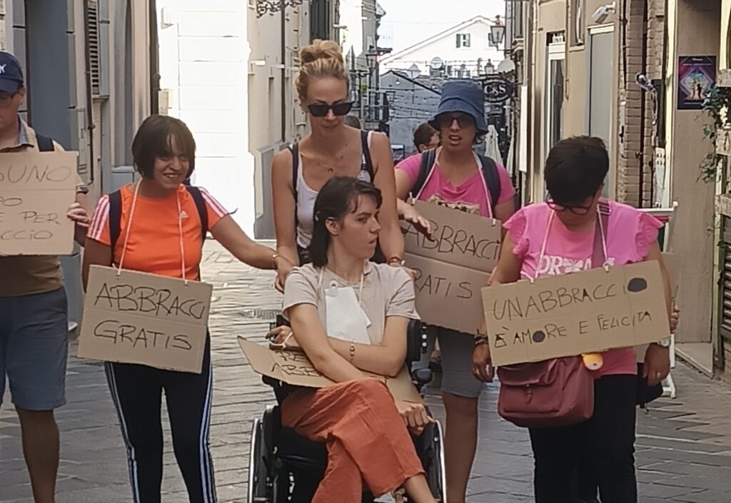 VASTO. “Un abbraccio che unisce” a Vasto la giornata degli Abbracci gratis con i ragazzi di Come un filo rosso del Centro Diurno per la Disabilità del Comune di Vasto, gestito dal Consorzio di Cooperative Sociali Matrix.