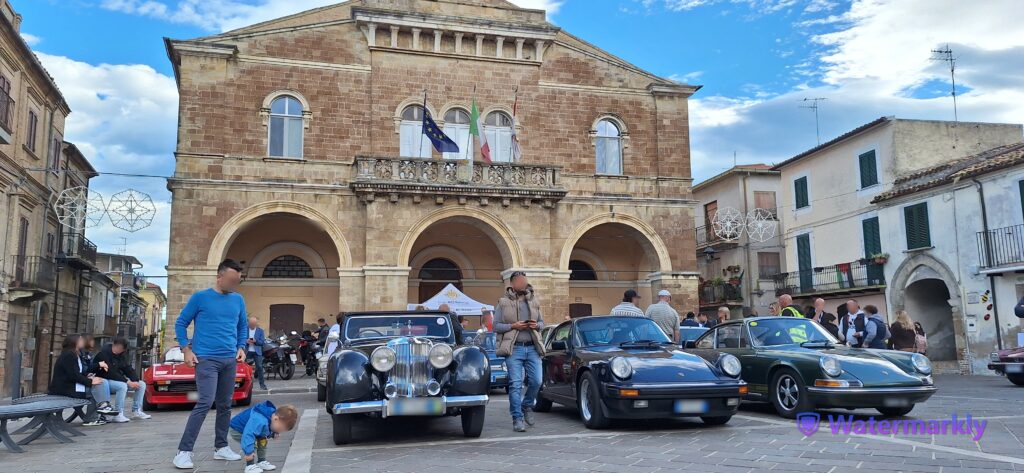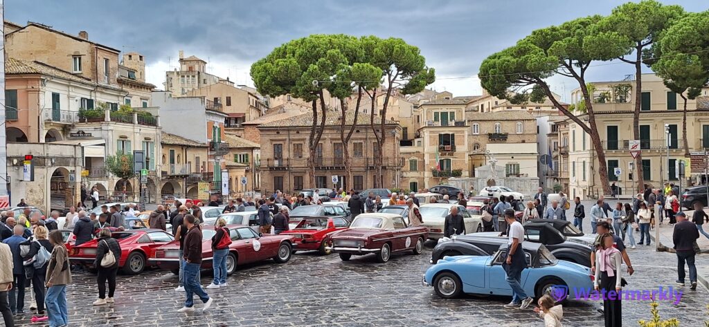 A Rocca San Giovanni, paese inserito tra i ‘Borghi più Belli d’Italia’, le vetture sono state disposte in Piazza degli Eroi, quasi ad impreziosire la solennità della torre campanaria del 1200 e del monumentale Palazzo del Municipio, adiacente alla Chiesa di San Matteo Apostolo, ancora dotata delle originarie arcate romaniche.