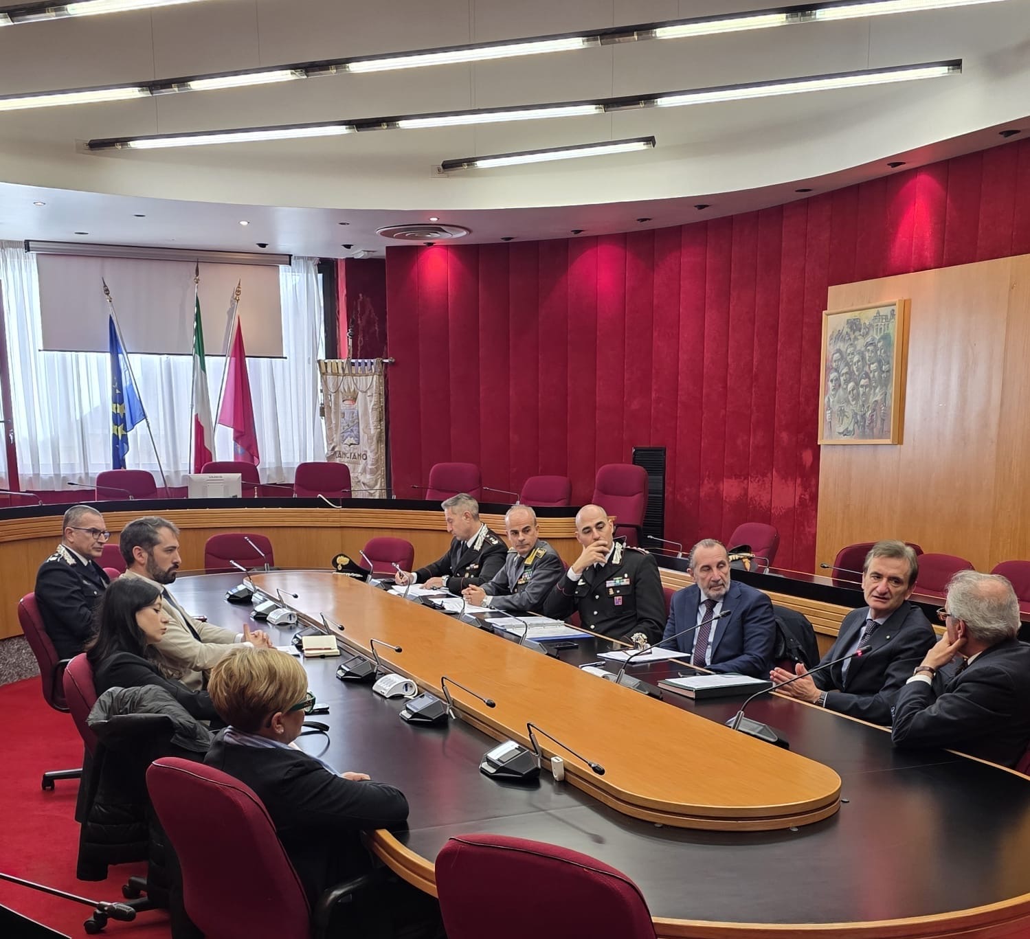 LANCIANO. Si è tenuta oggi, presso la Sala Consiliare del Comune di Lanciano, una riunione del Comitato Provinciale per l’Ordine e la Sicurezza Pubblica, presieduta dal Prefetto Gaetano Cupello, alla quale hanno partecipato, oltre al Questore, Marseglia, ai Comandanti Provinciali dell’Arma dei Carabinieri e della Guardia di Finanza, Col. Di Caro e Col. Otranto, il Sindaco del Comune di Lanciano, Paolini, unitamente all’Assessore alla Sicurezza, Paolucci, il Sindaco di Chieti, Ferrara e la Consigliera Di Pasquale per la Provincia.