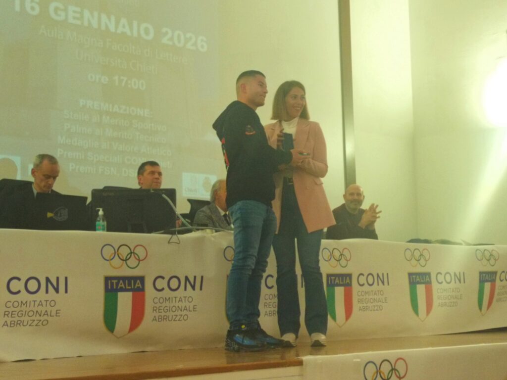 VASTO. Grande successo all’Aula Magna della Facoltà di Lettere dell’Università degli Studi “G. d’Annunzio “ di Chieti-Pescara, piena in ogni ordine di posti con una cornice di pubblico straordinaria, per la Festa Provinciale dello Sport del Coni Chieti organizzata dal delegato provinciale Massimiliano Milozzi. Alla presenza di numerose autorità civili, militari e sportive da tutto l’Abruzzo, sono stati oltre 80 i premiati fra atleti, tecnici, dirigenti e società sportive della provincia di Chieti che si sono distinti nell’anno 2025 raggiungendo risultati di prestigio in tante discipline sportive, ottenendo titoli nazionali e mondiali e presenze ad eventi di grande importanza. In occasione della festa sono state consegnati i seguenti riconoscimenti: Stelle al Merito Sportivo, Palme al Merito Sportivo, Medaglie al Valore Atletico, Premi Speciali Coni Chieti, Premi FSN, DSA, EPS e una serie di riconoscimenti.