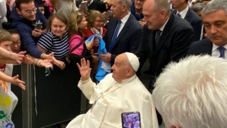 Alla presenza del sindaco di Frisa Nicola Labbrozzi e di don Alessio Primante, cancelliere della diocesi di Lanciano-Ortona, di don Edwin parroco di Frisa, i fedeli hanno incontrato il Santo Padre in sala Nervi, dove lo hanno informato delle iniziative parrocchiali per l’anno giubilare ed omaggiato con un’edizione speciale di Montepulciano d’Abruzzo Doc, appositamente prodotta dalla cantina Collo Moro per papa Francesco. Il Santo Padre ha poi benedetto le corone restaurate della Madonna delle Grazie (copatrona della parrocchia) che il prossimo 11 giugno, in occasione della messa solenne del centenario officiata dal Cardinal Comastri, saranno riposizionate sulla statua.
