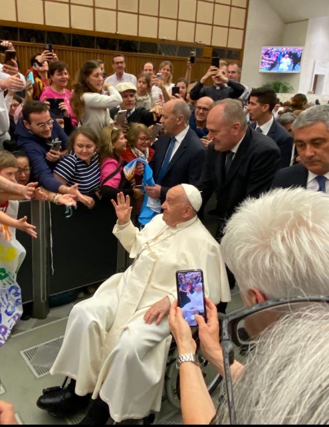 “Abbiamo vissuto una giornata di grandi emozioni e di condivisione vera – spiegano i rappresentanti del consiglio parrocchiale straordinario per il Giubileo– in un cammino di avvicinamento all’11 giugno, giornata in cui festeggeremo il centenario della nostra vita parrocchiale. L’anno giubilare, il primo della storia della nostra comunità – aggiungono – terminerà con la chiusura della Porta Santa, il 24 novembre nel giorno della solennità di Cristo Re e proseguirà, nei prossimi mesi, con momenti di crescita spirituale che saranno per tutto noi strumento di rinnovata consapevolezza sulla responsabilità che abbiamo come cristiani rispetto al futuro che ci attende per noi stessi e nella comunità. Custodiremo con gioia il ricordo dell’udienza dal Santo Padre, un vero dono di grazia”.